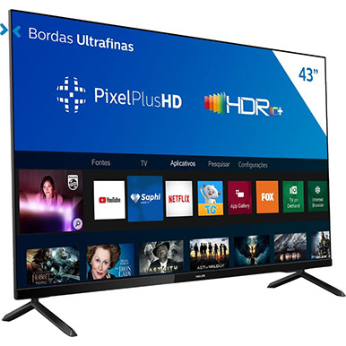 Smart Tv Philips 43" Full Hd Sem Bordas Hdr Plus Wifi Conversor Digital Netflix Youtube Globoplay e Prime Video